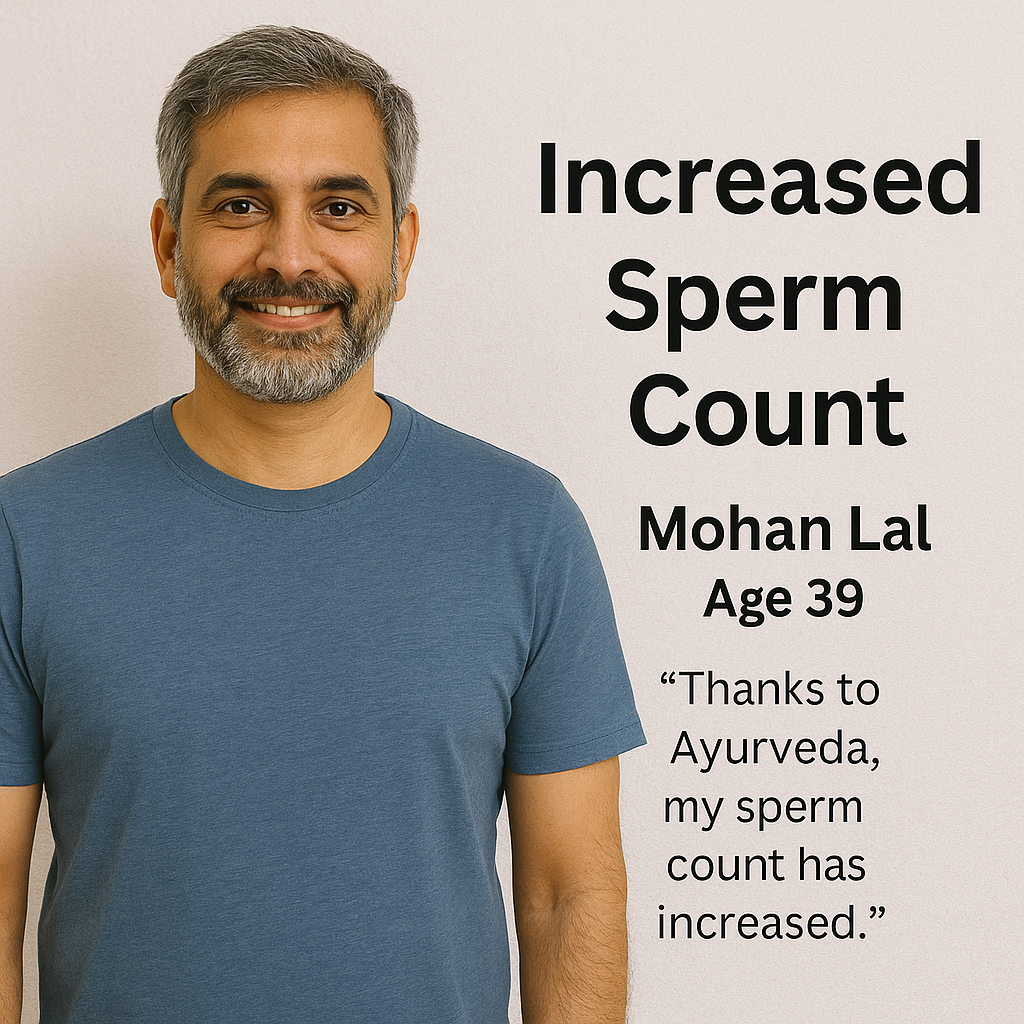 Treatment: Rasayana therapy with Ashwagandha, Shilajit, Kaunch Beej, and stress-relief techniques (meditation + diet).